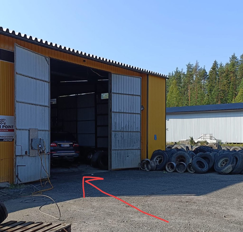 Meidät löytää parhaiten tämän viikon ajan tuolta raskaan renkaan asennushallin ovelta (kuva alh.) jossa hoidamme myös henkilöauton renkaan asennukset.